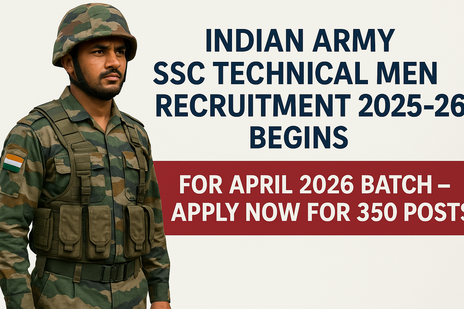 Indian Army SSC Technical Men Recruitment 2025-26 Begins for April 2026 Batch – Apply Now for 350 Posts